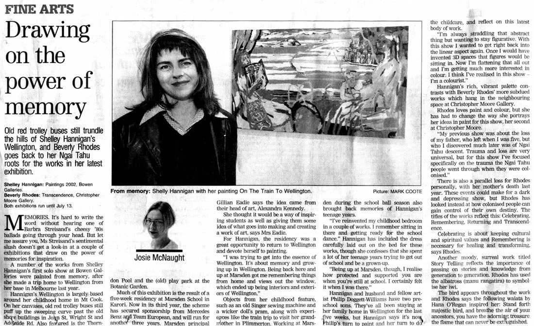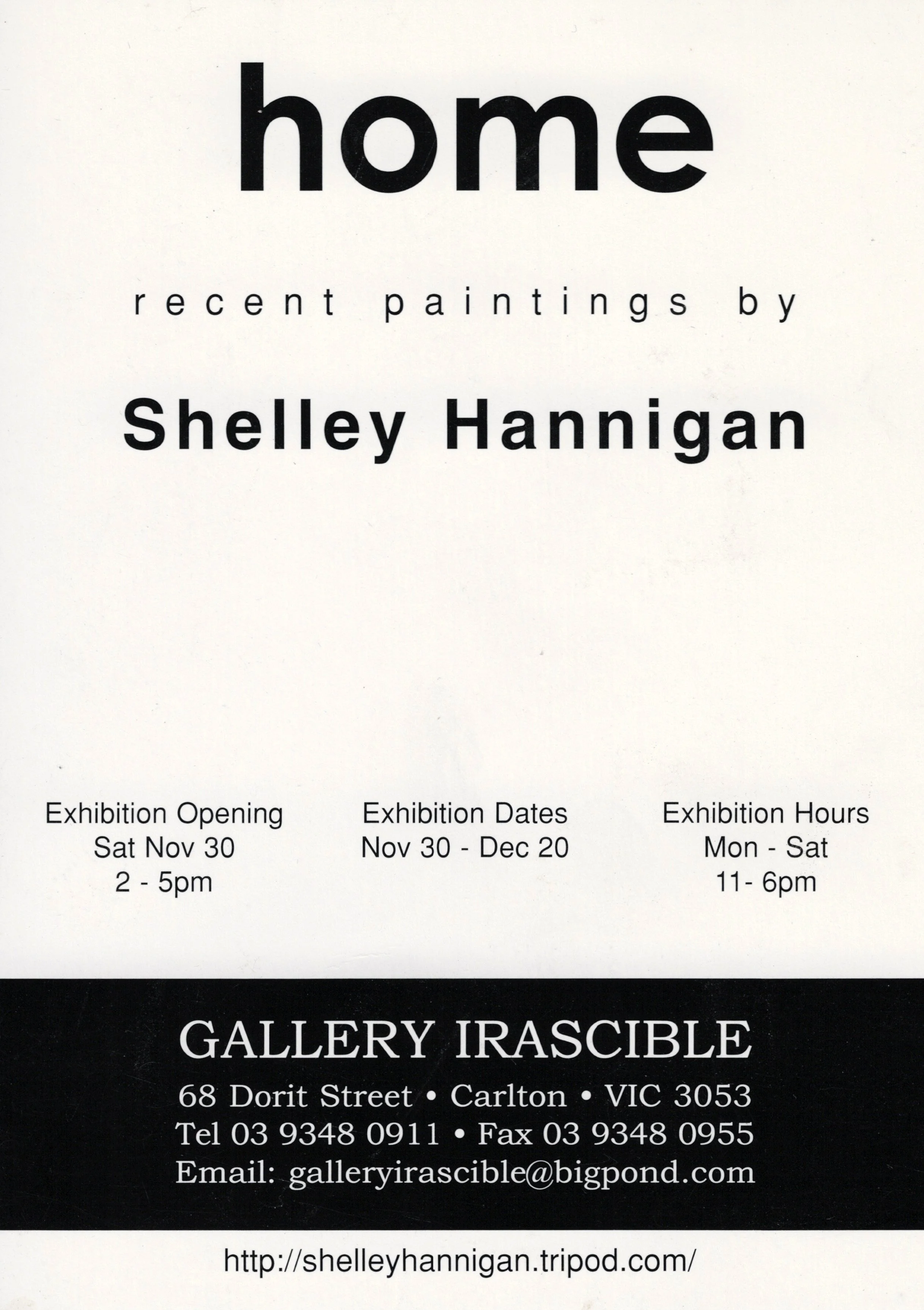 2002 Home, Gallery Irascible, Carlton, VIC. November 2002. View fullsize View fullsize Paintings 2002, Bowen Galleries, Wellington, Aotearoa (New-Zealand). July 2002. View fullsize View fullsize